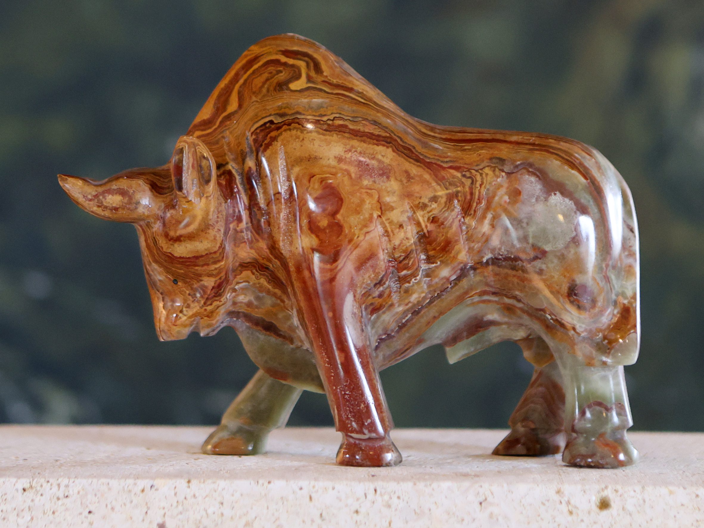 Bring a sense of power and bold elegance to your space with this handcrafted Onyx Bull. Sculpted from natural onyx, each figure displays distinctive veins and rich, polished tones that make it truly unique. A symbol of strength, determination, and resilience, it adds a striking presence to any setting — a refined decorative accent or meaningful gift with timeless appeal.